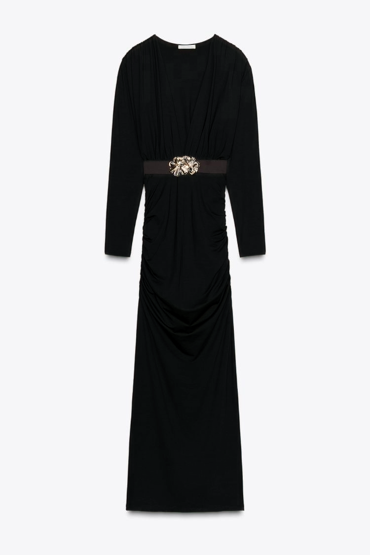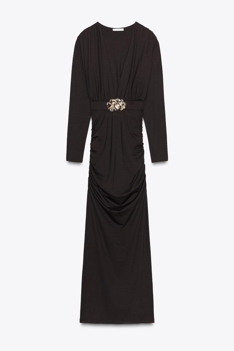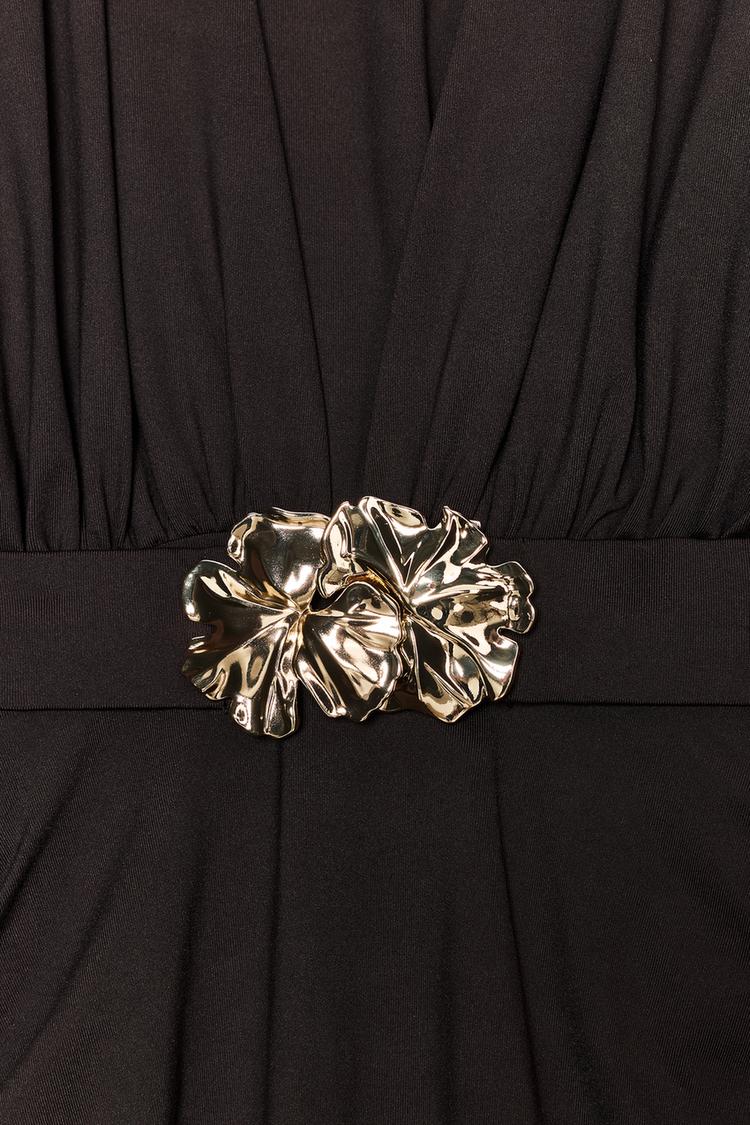 μεταλλική αγκράφα. Ντραπέ λεπτομέρεια από ύφασμα. Ίσιο στρίφωμα.