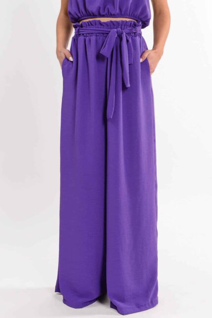 Παντελόνα Ψηλόμεση Φαρδιά Με Λάστιχο Μονόχρωμη