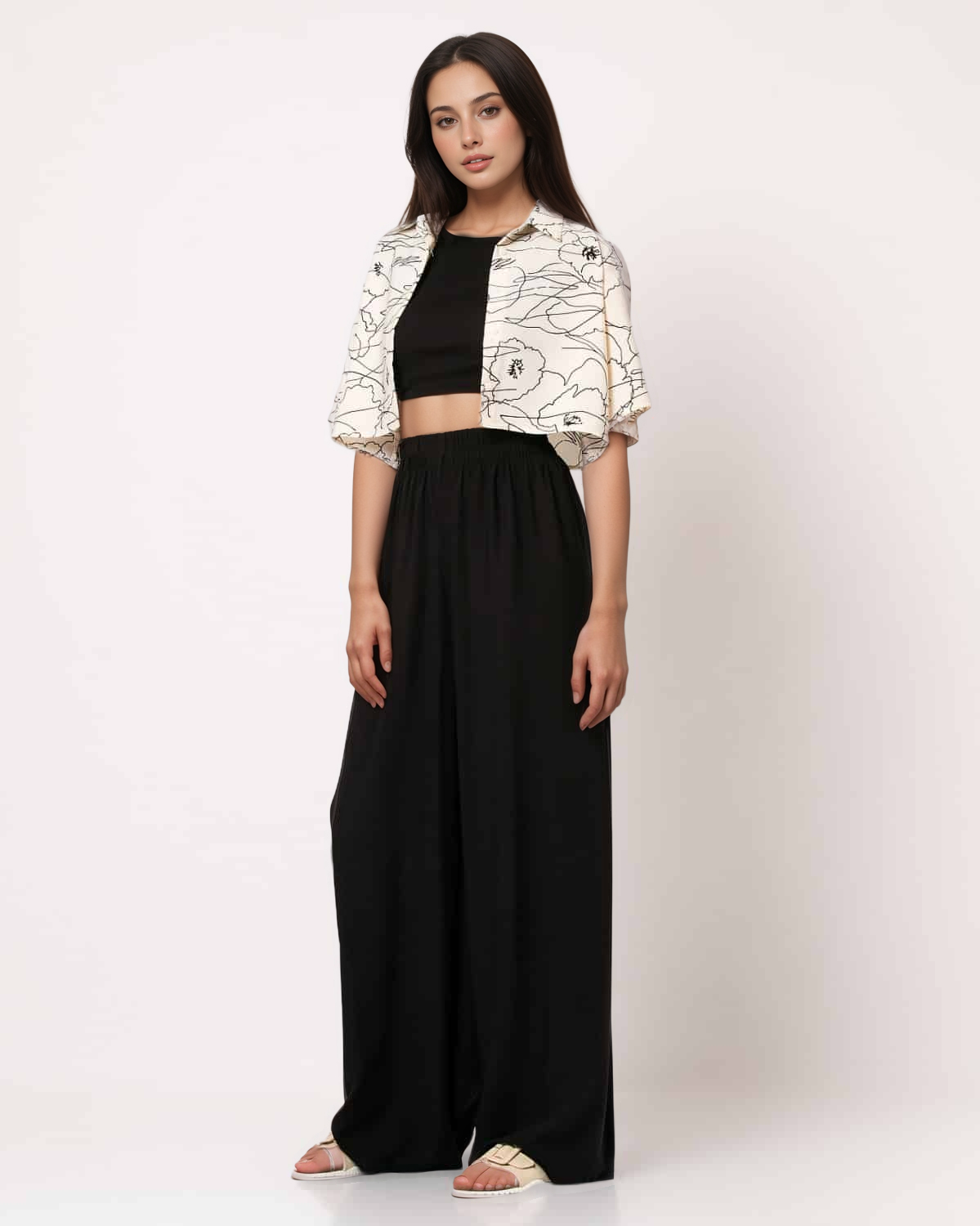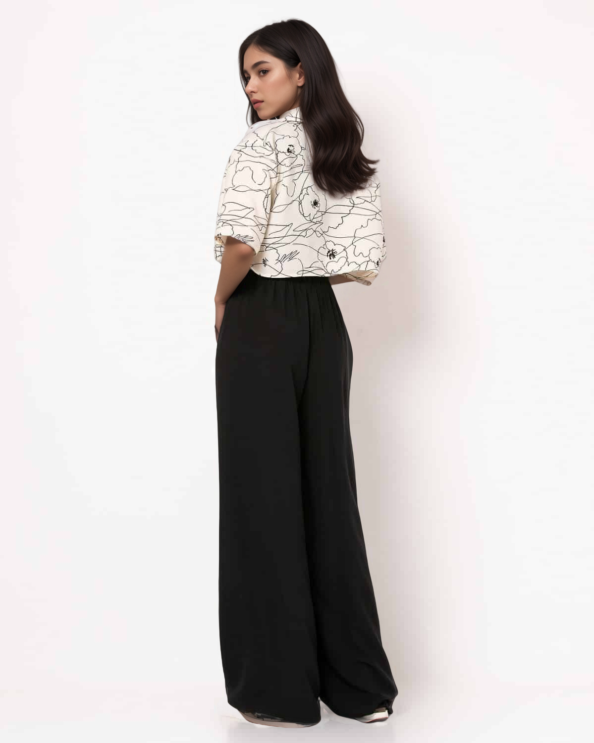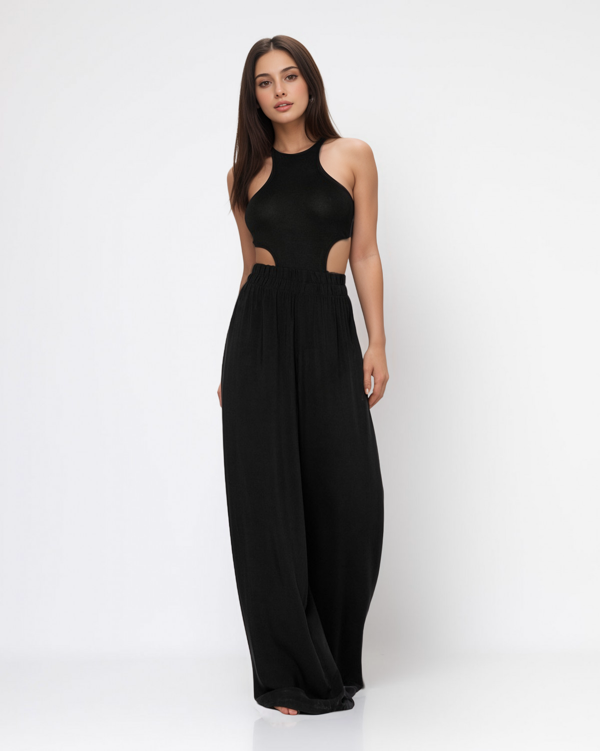 Παντελόνα Ψηλόμεση Φαρδιά Με Λάστιχο Μονόχρωμη