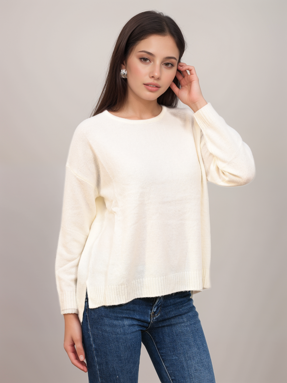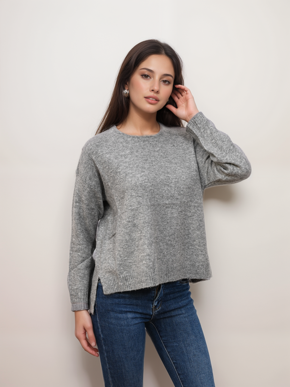 Γυναικεία πλεκτή μπλούζα λαιμόκοψη πολύ μαλακή. Cozy, κομψή και ευκολοφόρετη, χαρίζει απαλή αίσθηση και minimal chic εμφάνιση