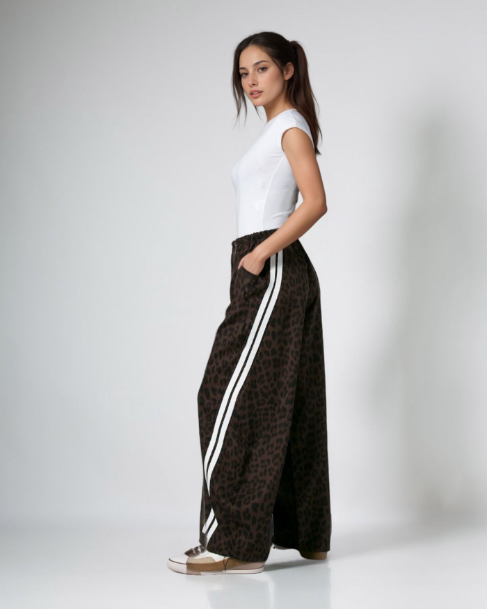 Παντελόνι Οversized Λεοπάρ Με Ρίγες Στο Πλάι