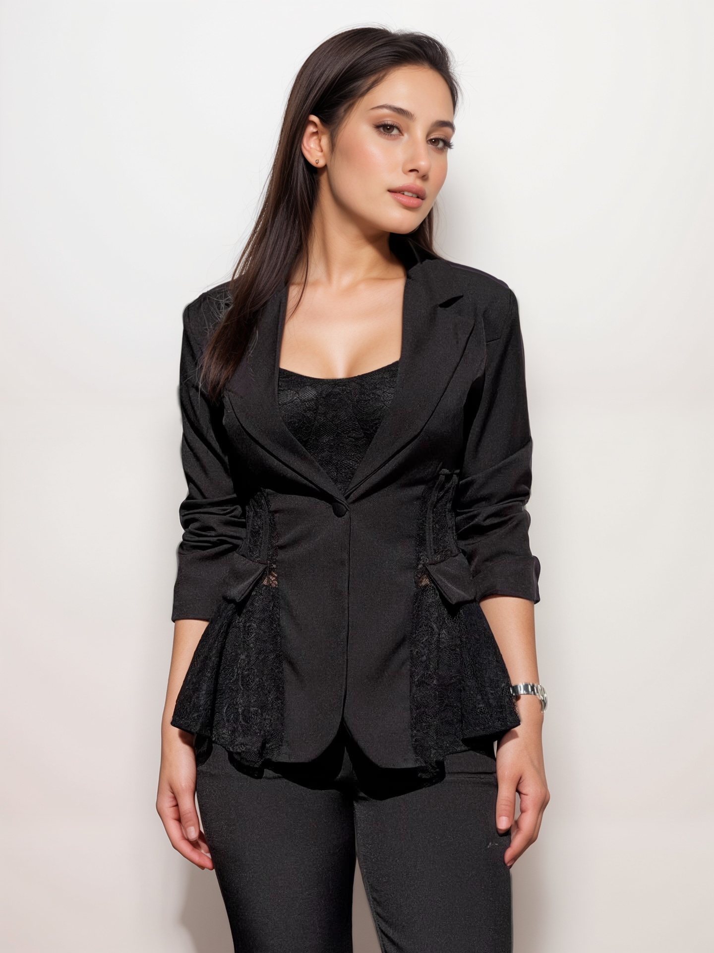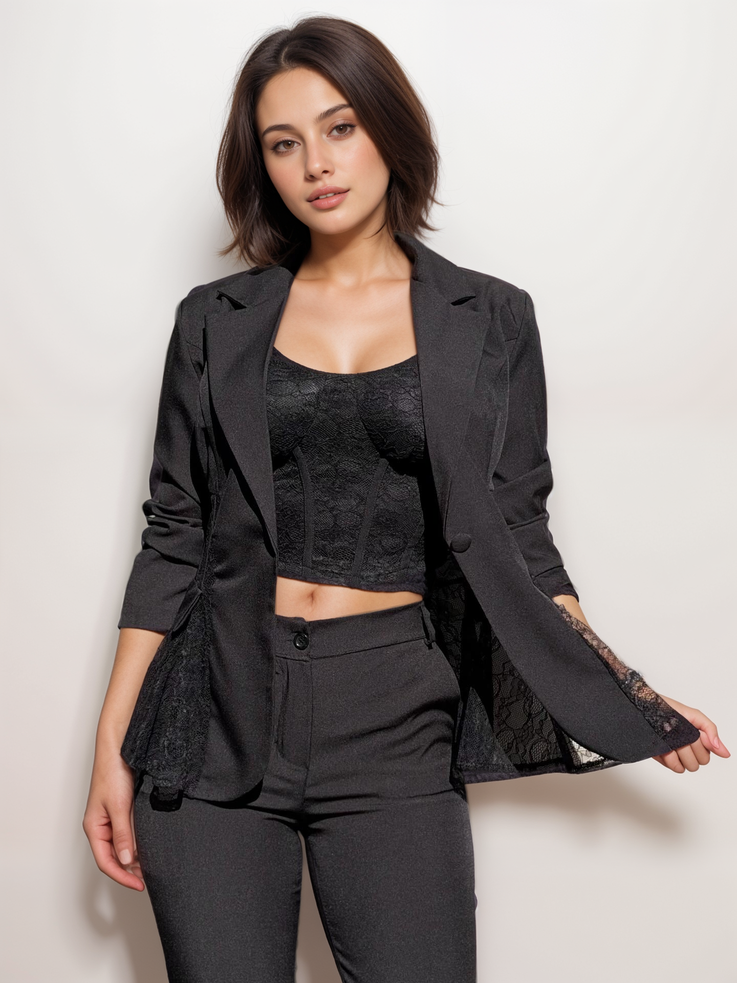 Σετ Μεσάτο Σακάκι Με Δαντέλα Και Παντελόνι Με Κουμπί