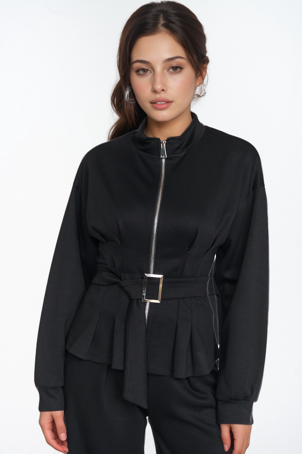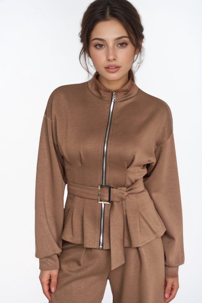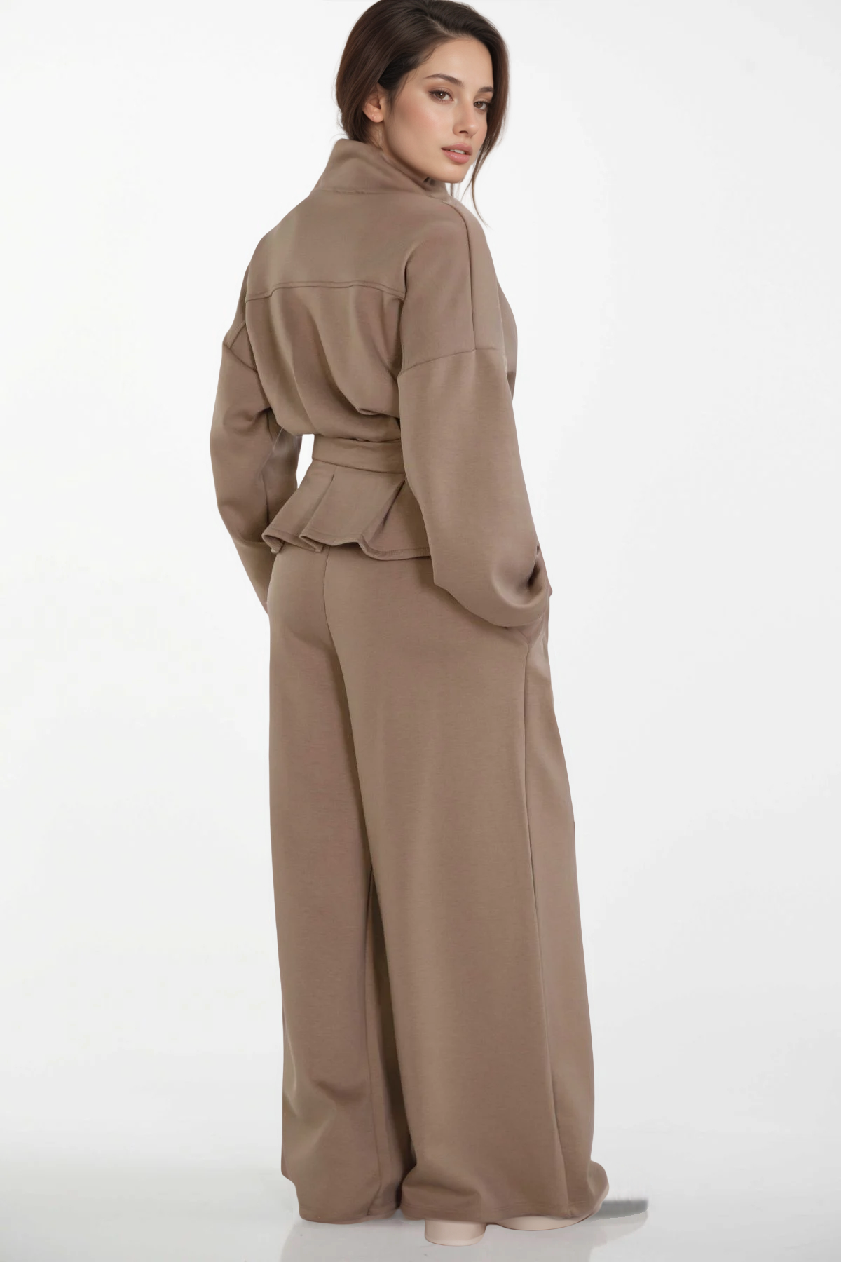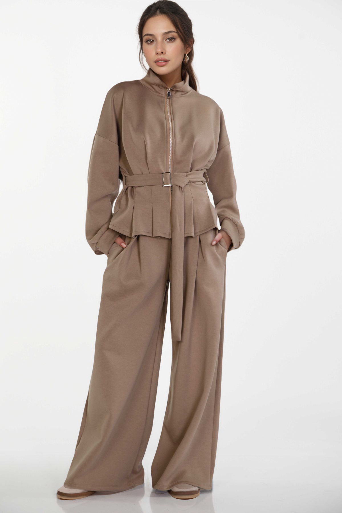 Σετ Ζακέτα Με Πιέτες Και Ζώνη,Παντελόνι Με Λάστιχο