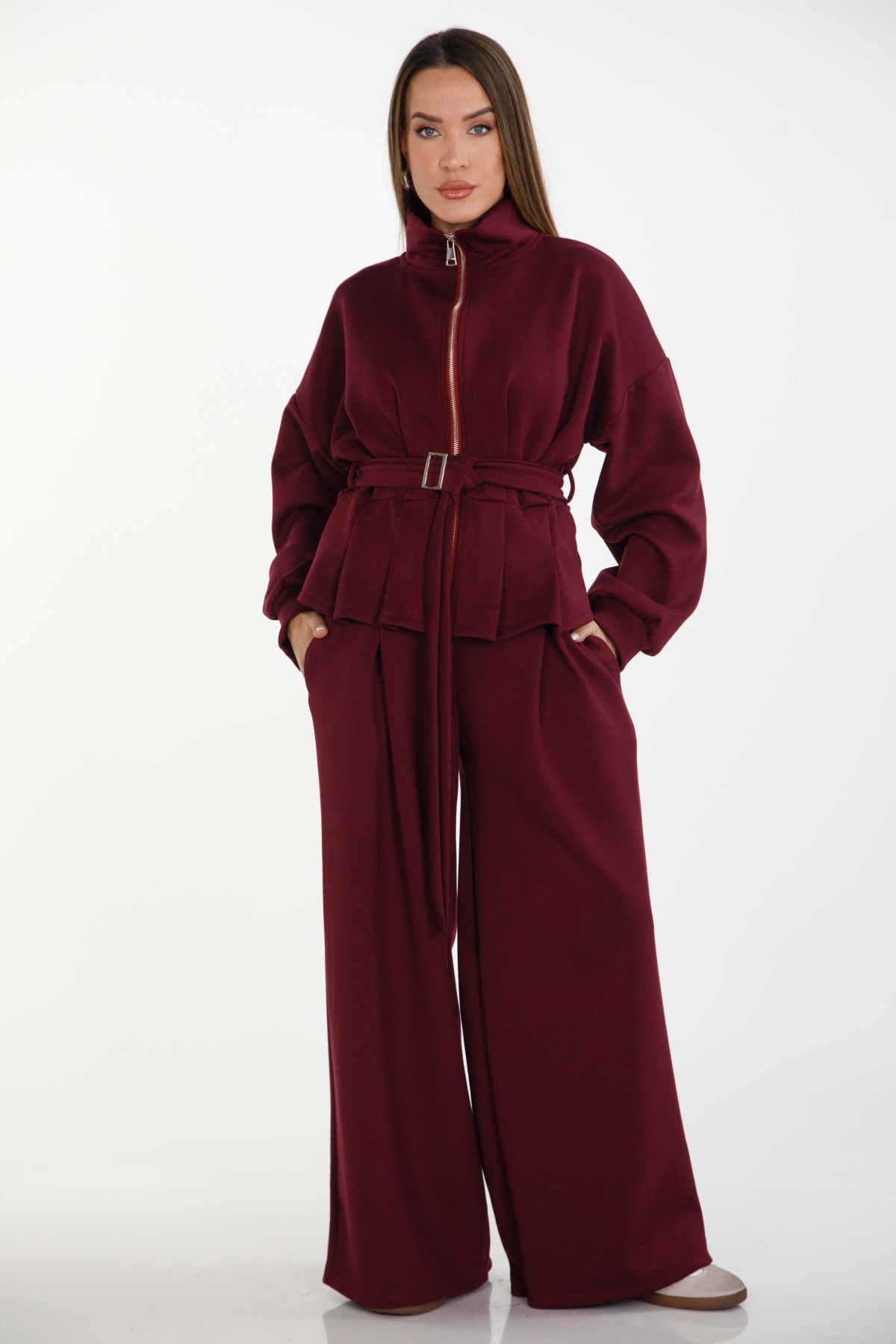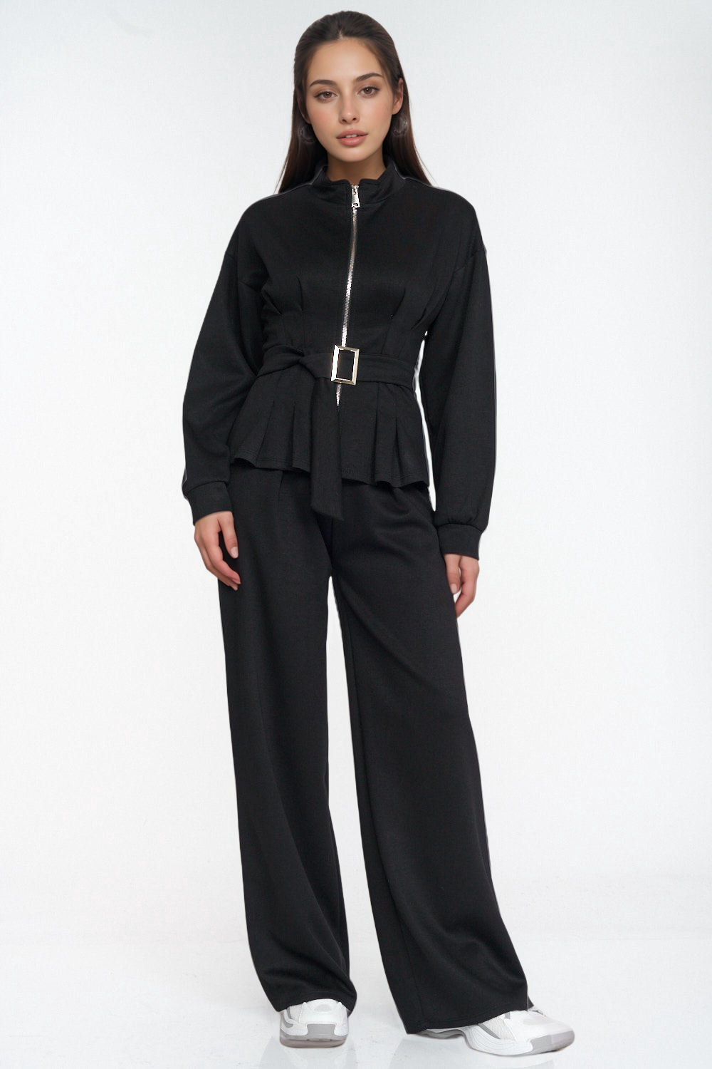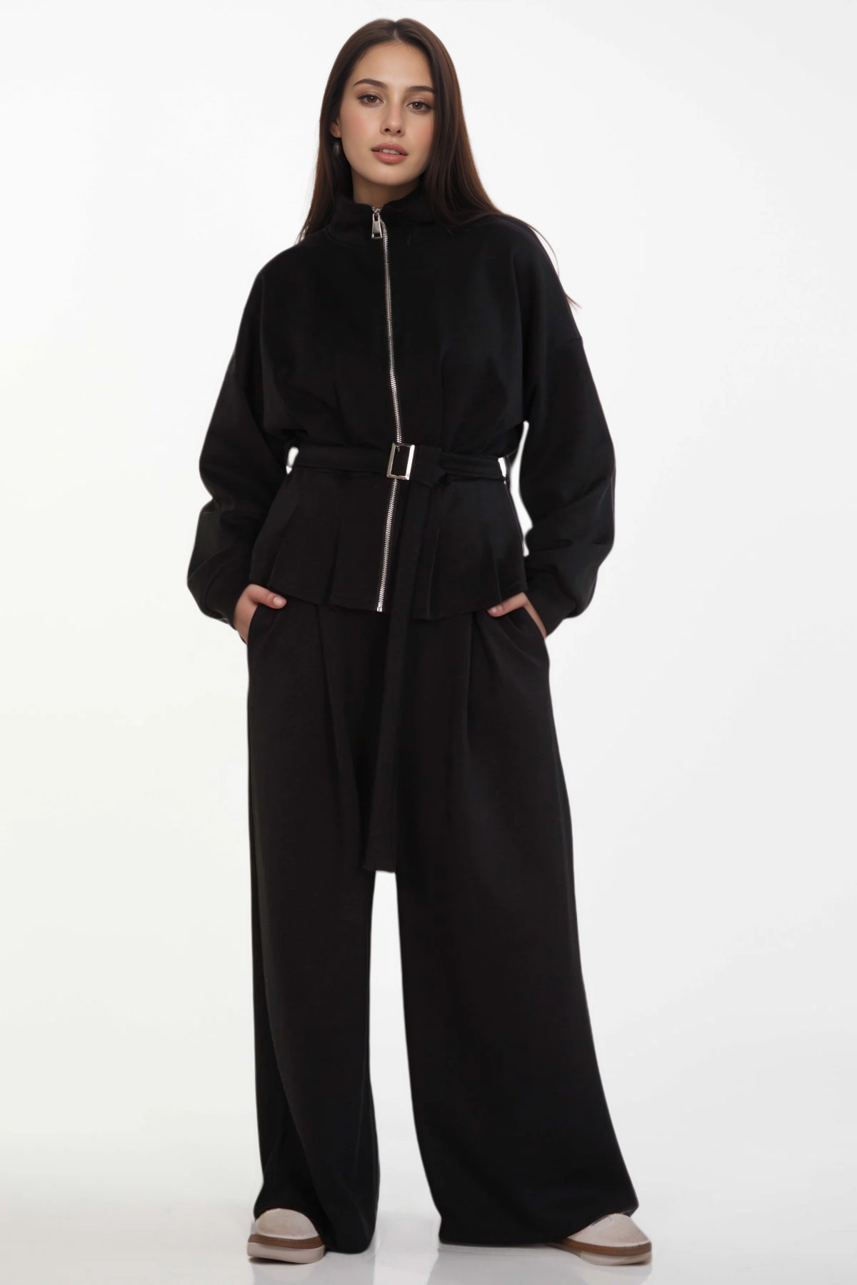 Σετ Ζακέτα Με Πιέτες Και Ζώνη,Παντελόνι Με Λάστιχο
