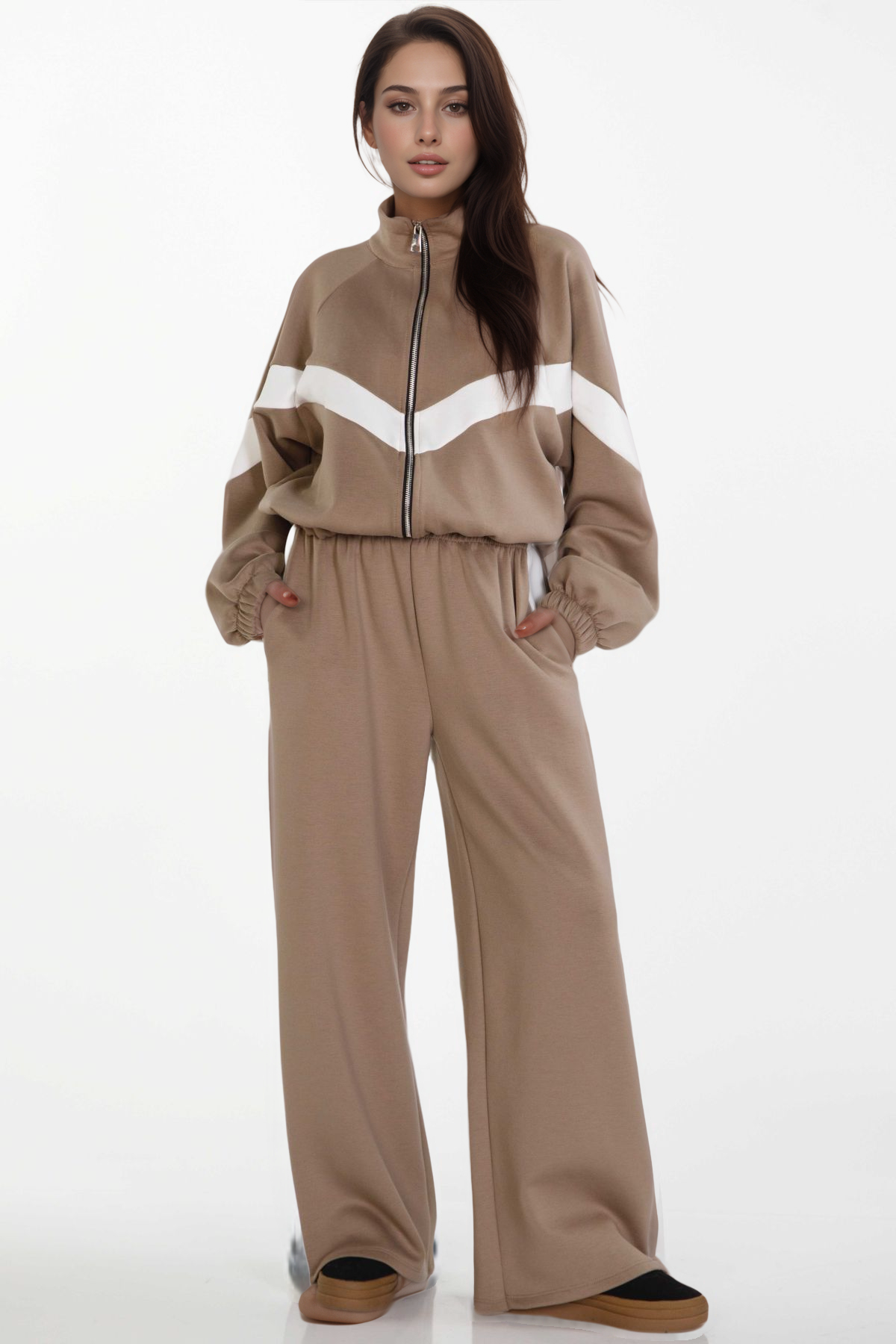 Σετ Ζακέτα Με Ρίγα, Ψηλόμεσο Παντελόνι
