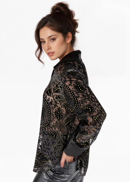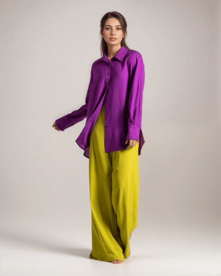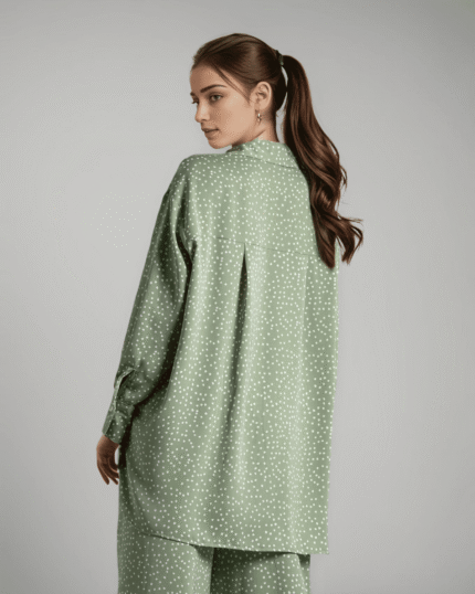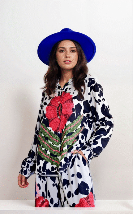 Σετ Εμπριμέ Μακρυμάνικο Πουκάμισο – Παντελόνα Ψηλόμεση Με Άνοιγμα Στο Πλάι