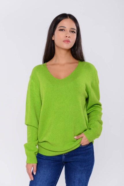 Μπλούζα Πλεκτή Με Απαλή Υφή Με V