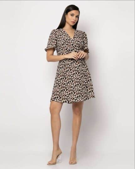 Mίνι Εμπριμέ Φόρεμα Με Πιέτες