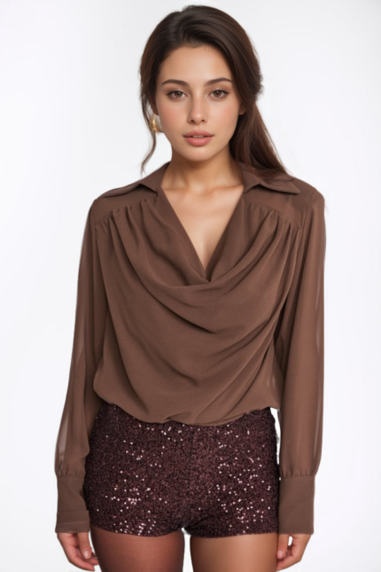 Πουκάμισο See Through Με Βάτες Χρώμα Καφέ