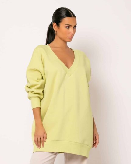 Μπλούζα Φούτερ Με Χνούδι Με "V" Χρώμα Lime