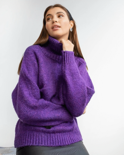 Πλεκτή Μπλούζα Ζιβάγκο Σε Άνετη Γραμμή Χρώμα Μωβ