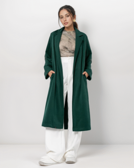 Παλτό Βελούρ Με Ζώνη Χρώμα Πράσινο