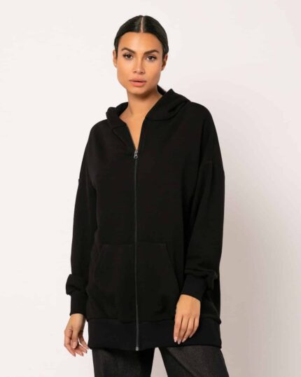Ζακέτα Φούτερ Oversized Με Κουκούλα και Τσέπες Χρώμα Μαύρο
