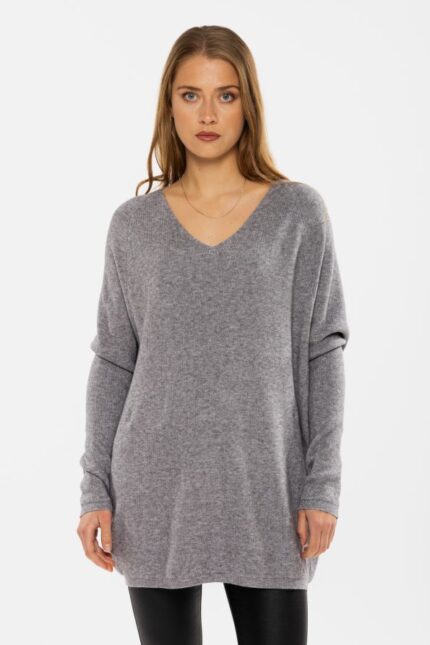 Πλεκτό Ασύμμετρο Με Λαιμόκοψη Χρώμα Γκρι