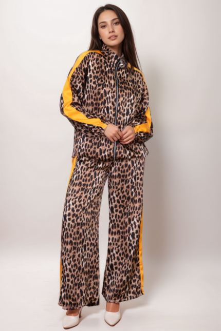Λεοπάρ Σατέν Σετ,Παντελόνι Και Ζακέτα Με Φερμουάρ