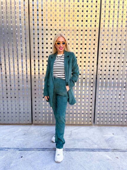 Σετ Κοτλέ Σακάκι Με Παντελόνι Χρώμα Χακι