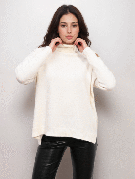 Ζιβάγκο Πλεκτό Με Πέρλες Σε Μανίκια Και Ώμους Χρώμα Άσπρο
