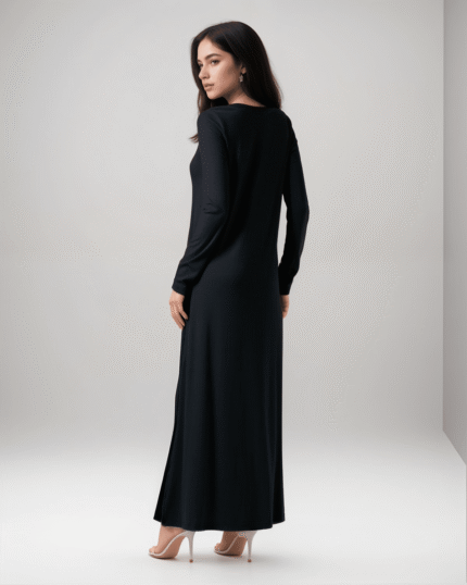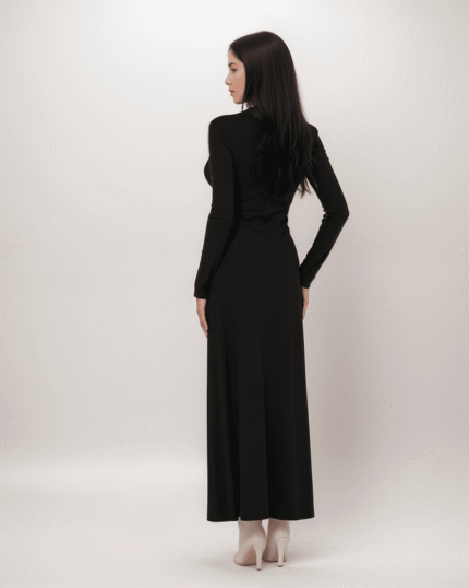 Φόρεμα Maxi Μακρυμάνικο Σε Ριπ Με Άνοιγμα Στο Πλάι